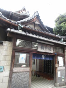 残念なのは町からこの重要文化財的な拠点がハード、ソフト面とも消えていくことだ。ハード面は前述した通りのしつらえである。特にまだ残る古い銭湯では入口の上にある唐破風、千鳥破風など神殿造りの屋根とその上にそびえたつ煙突は町のランドマークでもある。私はまだGPSのない時代に東京都浴場組合が発行した銭湯マップを携えて都内の銭湯に入りまくったことがあるが、地図で近くまで来て空を見上げ煙突や三角形の大きな屋根を探すと銭湯のある場所がわかった。破風造りの玄関をくぐり下駄箱に靴を入れ、番台(いまはフロントが多い)で湯銭を払うと別世界がある。そこから先はソフト面の領域。服を脱いでまずドーンと出てくる富士山の大きなペンキ絵が旅行気分を誘う。身体を洗って大きい湯舟に伸び伸びと浸かり、温まると外に出て庭を眺めたりする。心身ともにくつろぎ至福の境地だ。